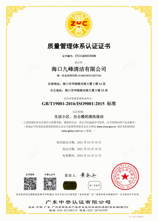 质量管理体系认证证书
