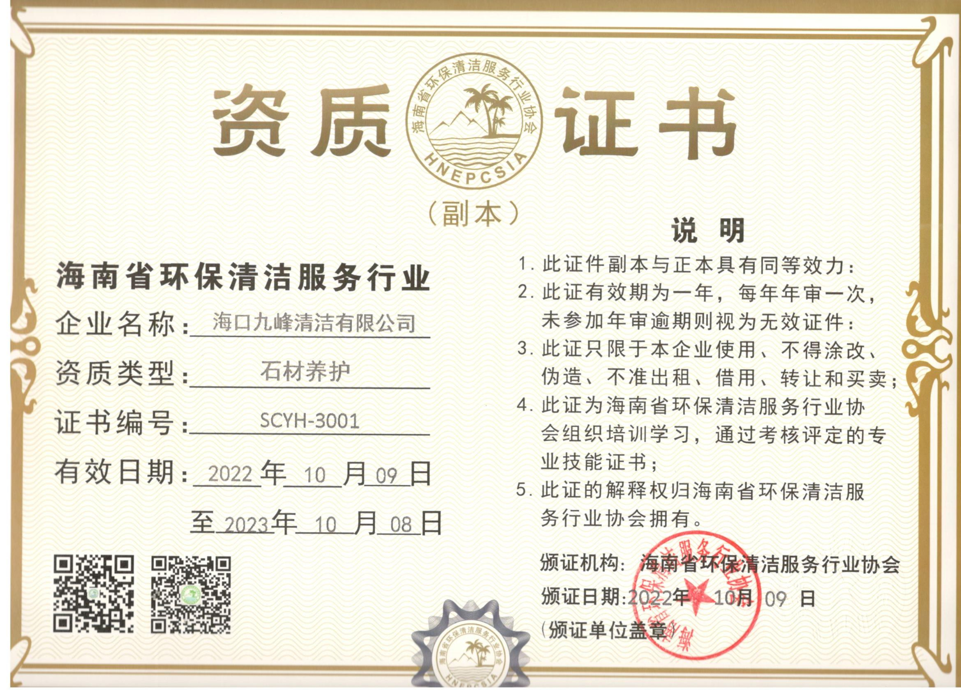 石材养护资质证书