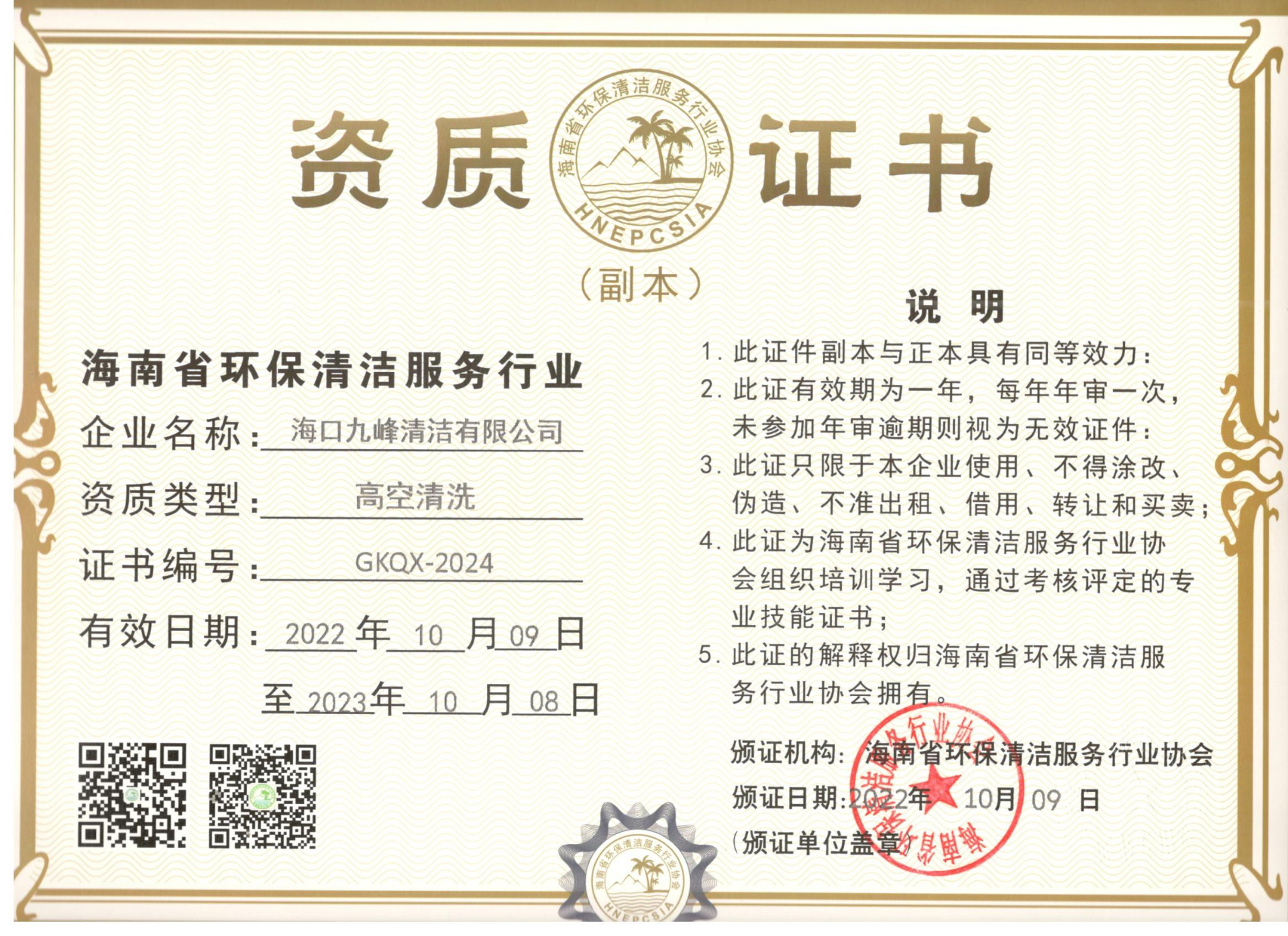 高空清洗资质证书